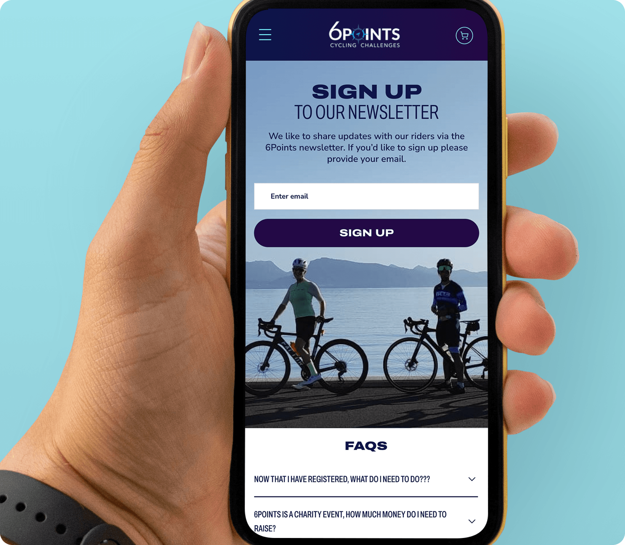 Since launch, the website has increased donations by 31% from the previous year, expanded sign ups for cycling challenges and provided a polished platform to share the charity’s story and mission. The end result? A vibrant online hub that empowers riders, engages supporters and amplifies the impact of 6Points Cycling Challenges.