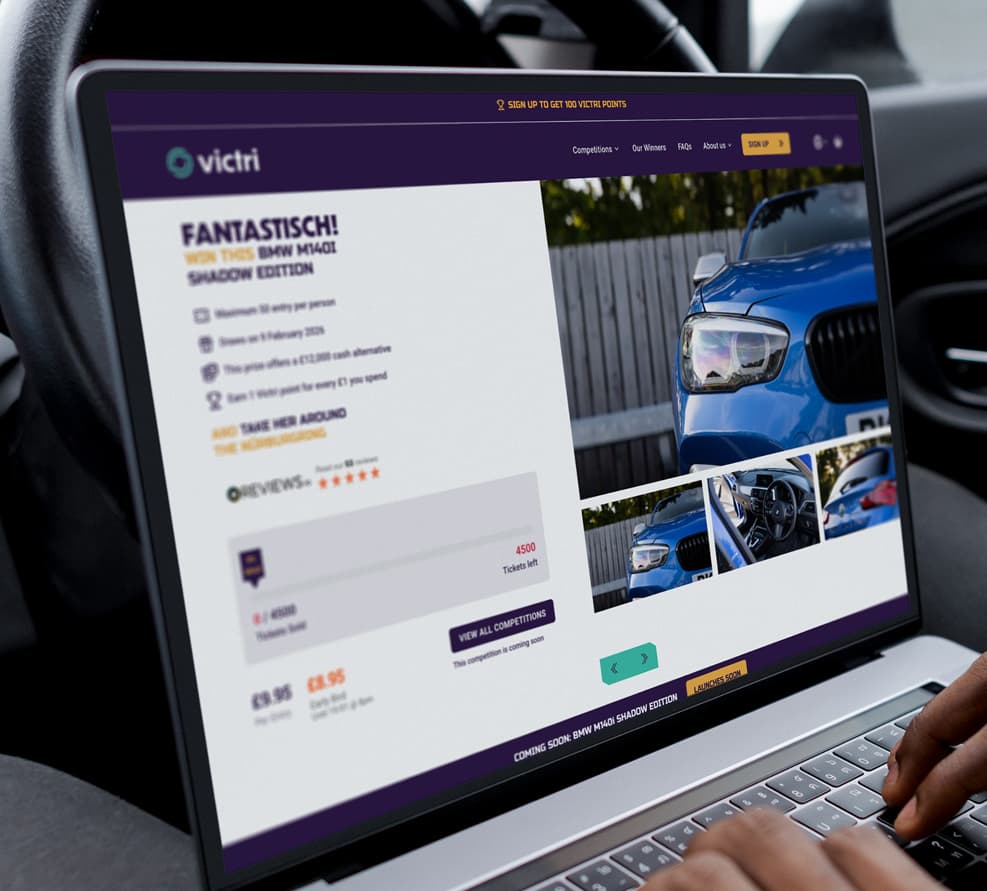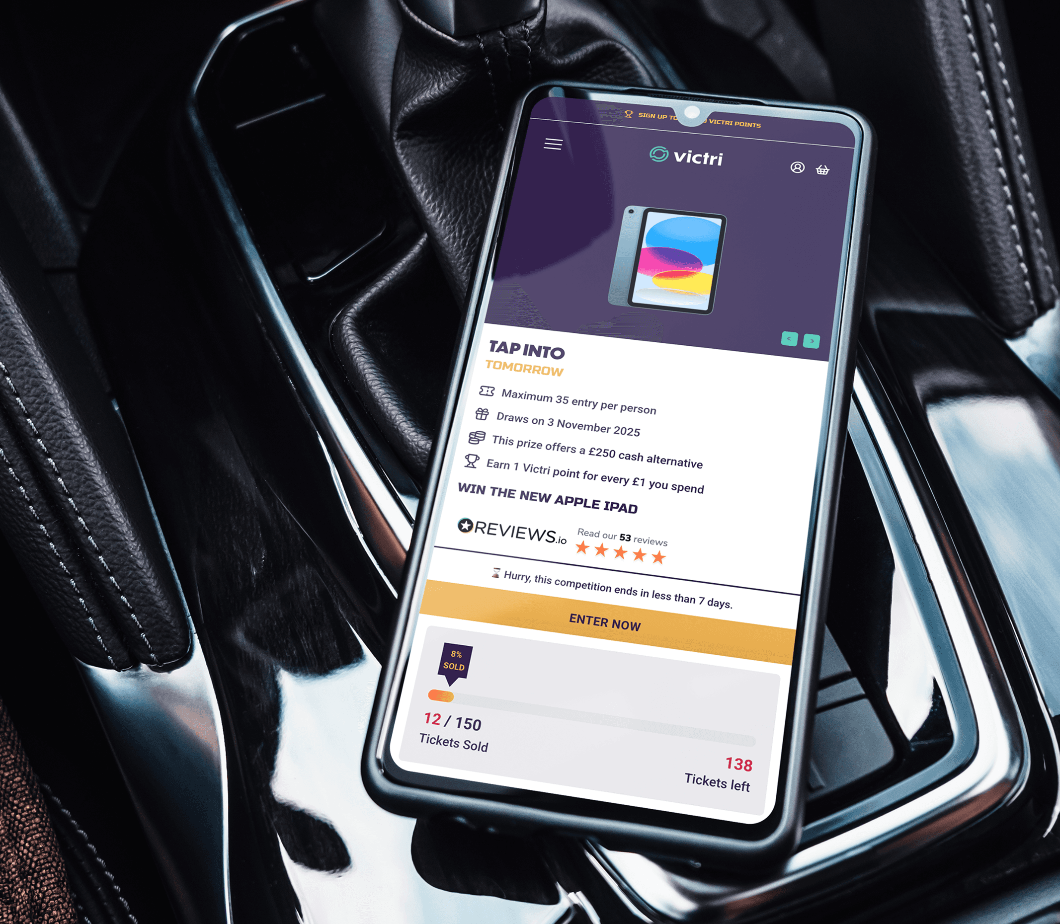 - A custom admin portal that gives Victri full visibility into competitions, entries, live draws, custom discount codes and upsells.